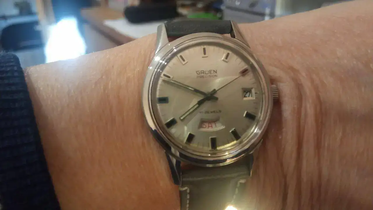 Mi relojito GRUEN PRECISION, tuvo un accidente, en un lavado de manos profuso, entro humedad. Resultado, empañamiento instantáneo del plexi, manchado de las agujas, y todos los cagamentos. Inmediatamente, llevarlo al relojero de confianza para su reparación, no esperar. Me decidí, prontamente por DANS, nunca había enviado un reloj, era la primera vez