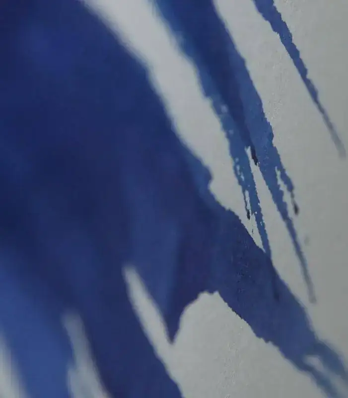 La característica que más me agrada de esta tinta son sus degradados. El secado no es uniforme: recién depositada sobre el papel, parece un azul saturado, oscuro, intenso. Pero esa aparente saturación disminuye al poco tiempo y va tornando a tonalidades cerúleas, algo más claras y levemente violáceas.