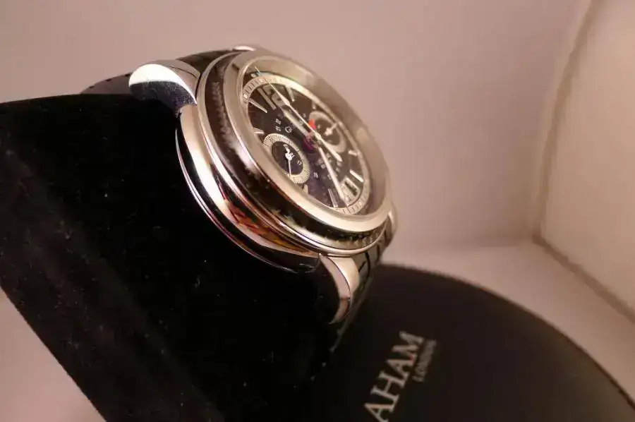 En venta reloj Graham Grand Silverstone, Cronografo y Gmt, en un estado espectacular y con una trasera ciega preciosa.