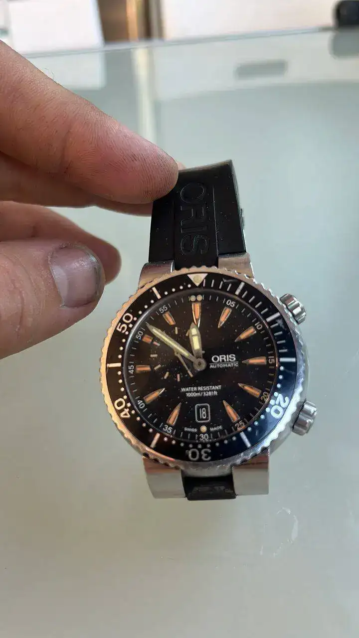 He decidido el Sat porque la estanquiedd correcta se hace volviendo a sellar el vidrio de zafiro , y un relojero muy bueno de Sitges me dijo que me olvide de cambiar solo juntas que hacer estanco un reloj de 1000m es mas complejo de lo que parece .El tema del agua es una putada muy gorda.... y conozco varios casos de Oris y en eso Hora Exacta son muy buenos y fiables, yo solo veo que la única opción que te queda es reparar, pq si vendes así, pueden pensar que lo llevaste a reparar y el coste era mayor que el reloj casi nuevo, y por eso lo vendes estropeado... ...