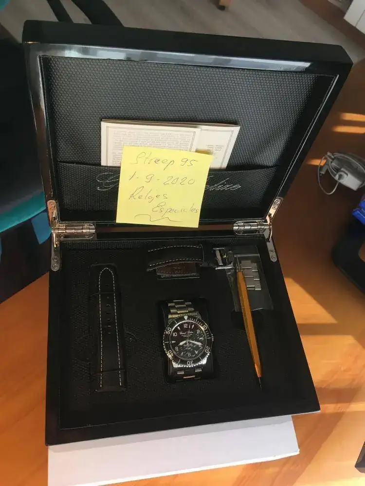 - Material caja / bisel / Ø : Acero inoxidable 316L / Zafiro 44 mm Luminova