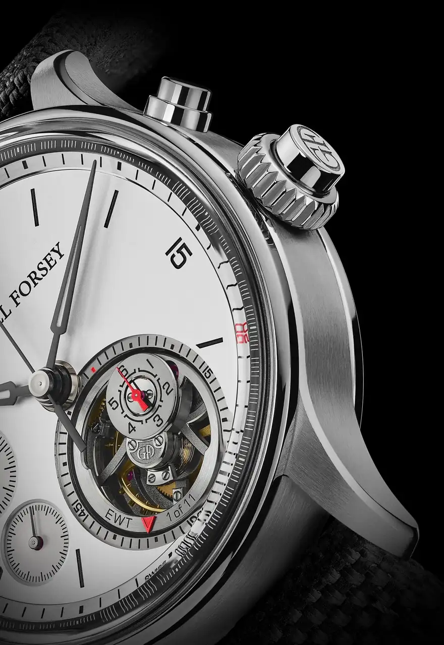 Hay más: fiel a la pasión de Greubel Forsey por el tourbillon, este Nano Foudroyante está integrado en un tourbillon volante, el primero diseñado por Greubel Forsey. Y aunque el tourbillon volante gira constantemente, la esfera Nano Foudroyante pivota y permanece permanentemente alineada hacia las doce para una lectura óptima. Por si todo esto no fuera suficiente, este décimo invento tiene lugar en el corazón de un movimiento flyback de cuerda manual y rueda de pilares.