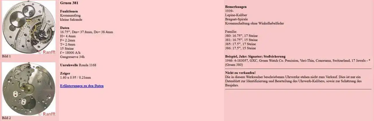 De los menos conocidos, los calibres de 16 líneas franceses, de Gruen llamado verythin (ultraplano) se encuentran en relojes de bolsillo de la famosa casa Gübelin y por supuesto en relojes de bolsillo de Gruen. Estos movimientos no tienen que envidiar a relojes parecidos de los años 20/30 de PP, AP o VC. La calidad era top, típicos movimientos de Ginebra.