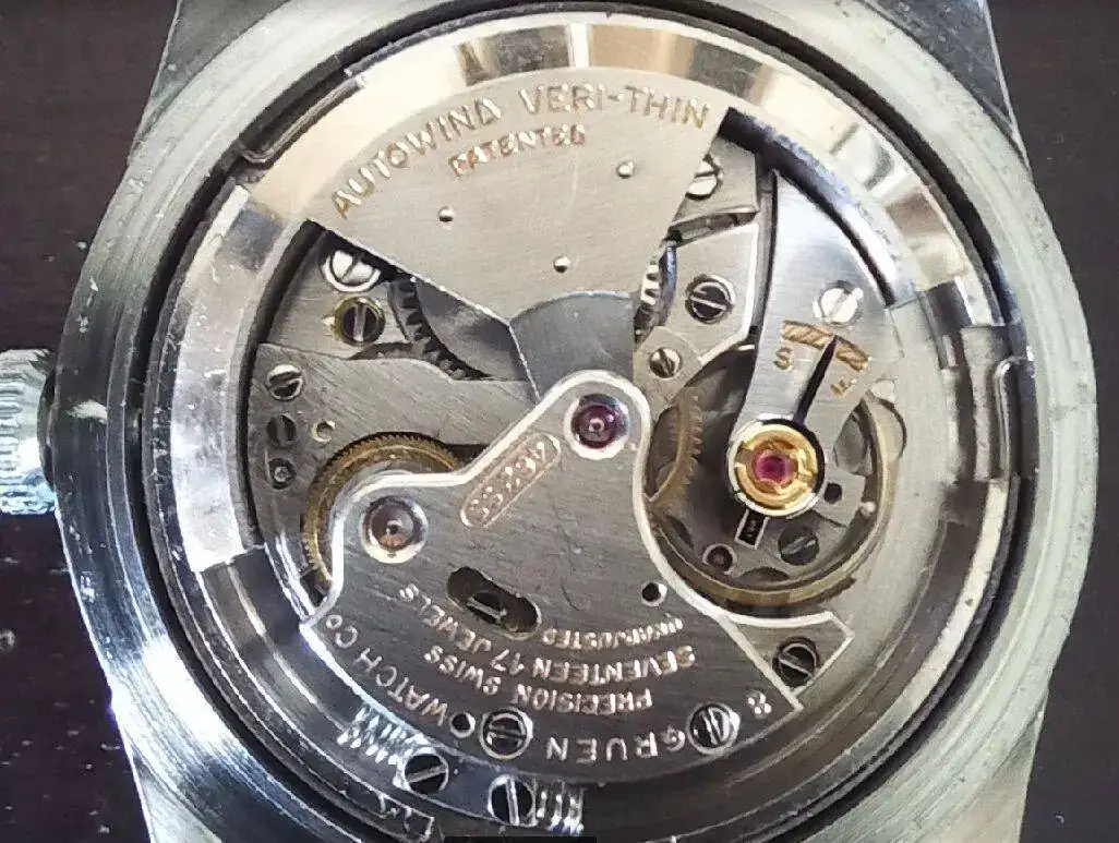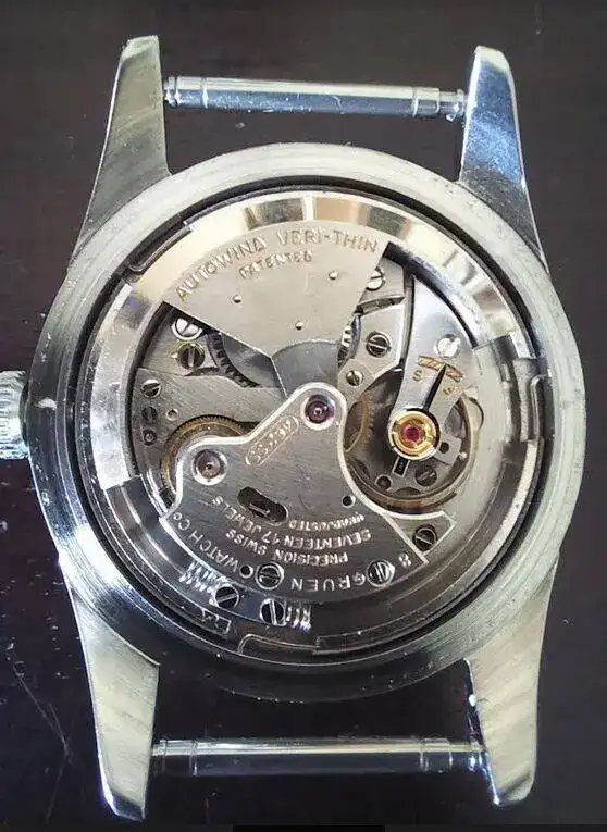 Gruen llama el calibre "very thin", que desde mi punto de vista no es más plano que los Omega a martillo, pero bien.