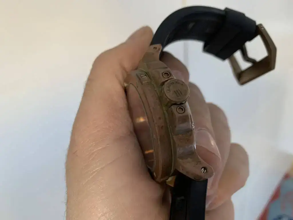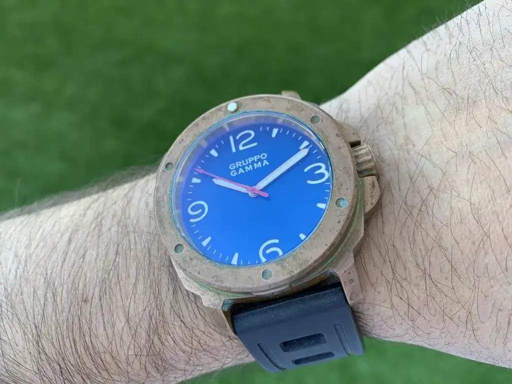 Hola a todos , saco a la venta este estupendo Gruppo Gamma de Bronce . Como veis en las fotos , el reloj tiene una pátina súper chula ya , y una esfera azul espectacular. Lo vendo por que tengo ya 2 bronces más y creo que es suficiente. El estado del reloj es muy bueno , usado con pátina pero sin nada reseñable.