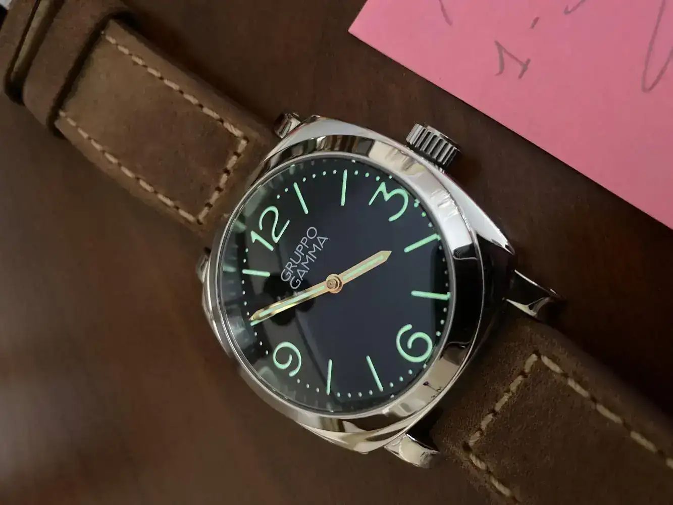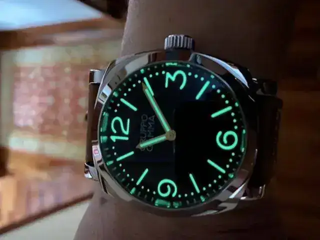 Dial "Sandwich", con una luminiscencia en la oscuridad muy buena.