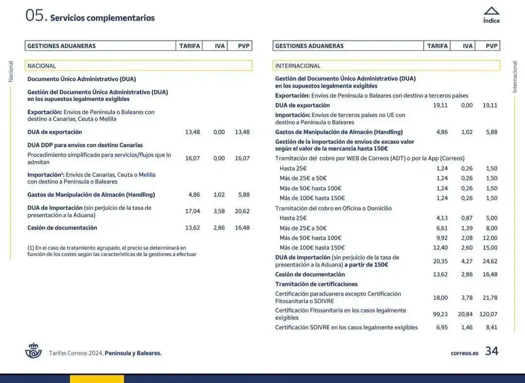 Por último os dejo este anexo con las tarifas de Correos. Muchas veces, nos saca de dudas sobre qué nos están cobrando