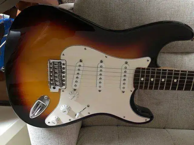 Vendo Guitarra Fender Stratocaster con etiquetas,como sacada de la tienda,pero completamente revisada y ajustada,funda Fender ,cuerdas nuevas,palanca de tremolo y llaves especiales para ajuste.Un cañon en todos los estilos.