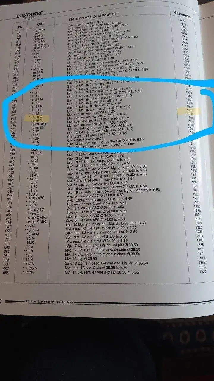 Según la tabla de movimientos de uno de mis libros de Longines, el 12.68z nació ¡¡en 1929!!