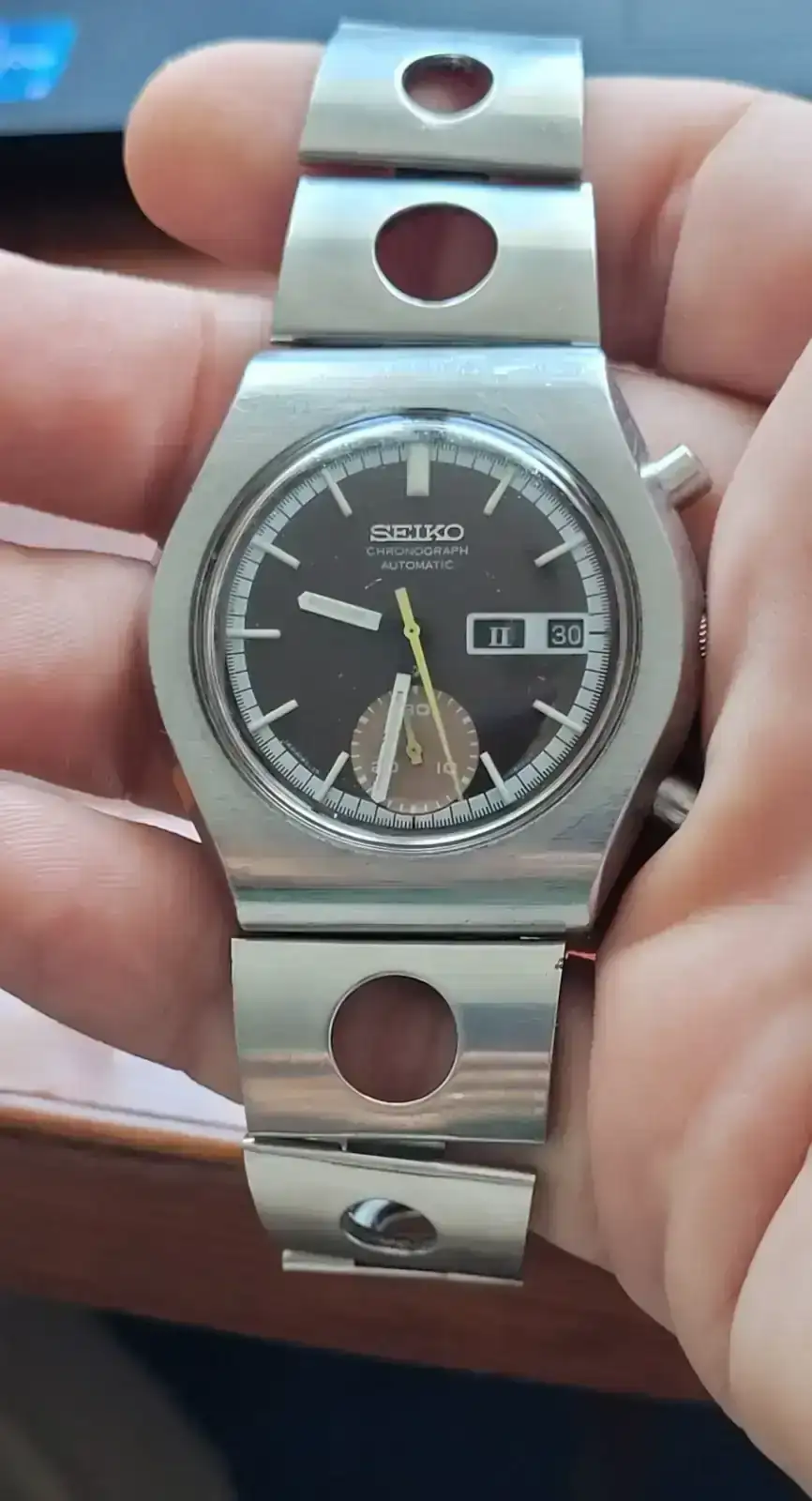 Le comento a Gustavo que ese tipo de brazalete es el que llevan de origen los Retro Racer, y el trabajo que cuesta encontrar uno...y va y me dice: "lo rescaté de un montón de brazaletes rotos, te lo mando". Me llegó la semana pasada, y es el que lleva mi reloj de hoy.