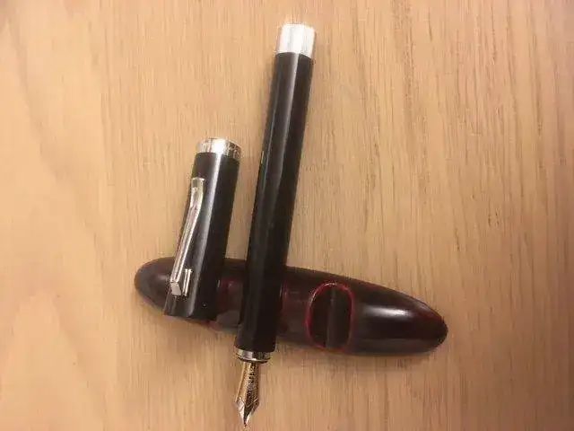 Esta viene en una bonita caja de regalo que incluye un tintero azul sin usar (que vale por sí mismo 25 Euros), convertidor papeles sin sellar.