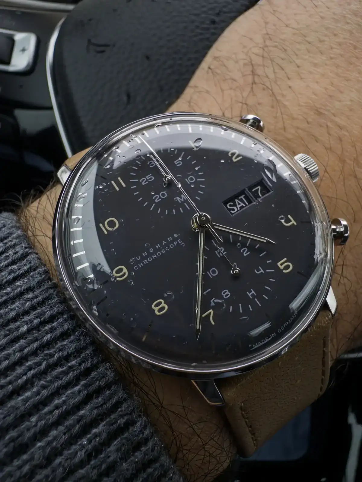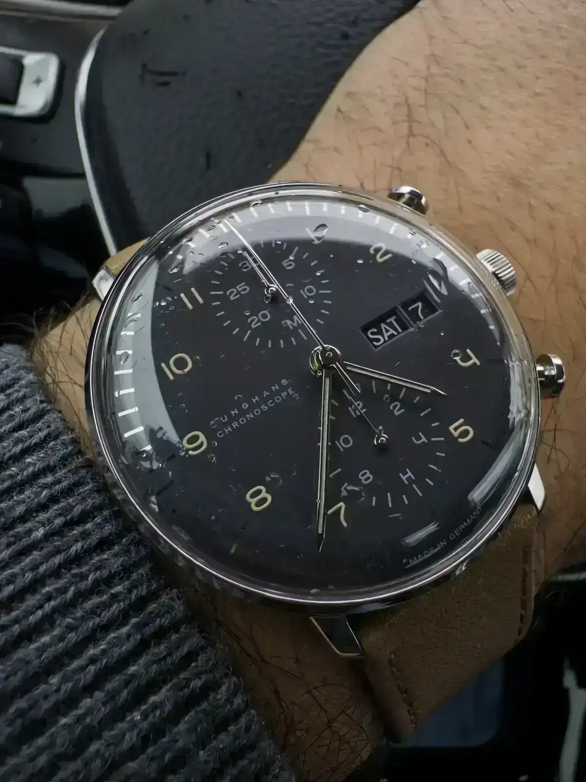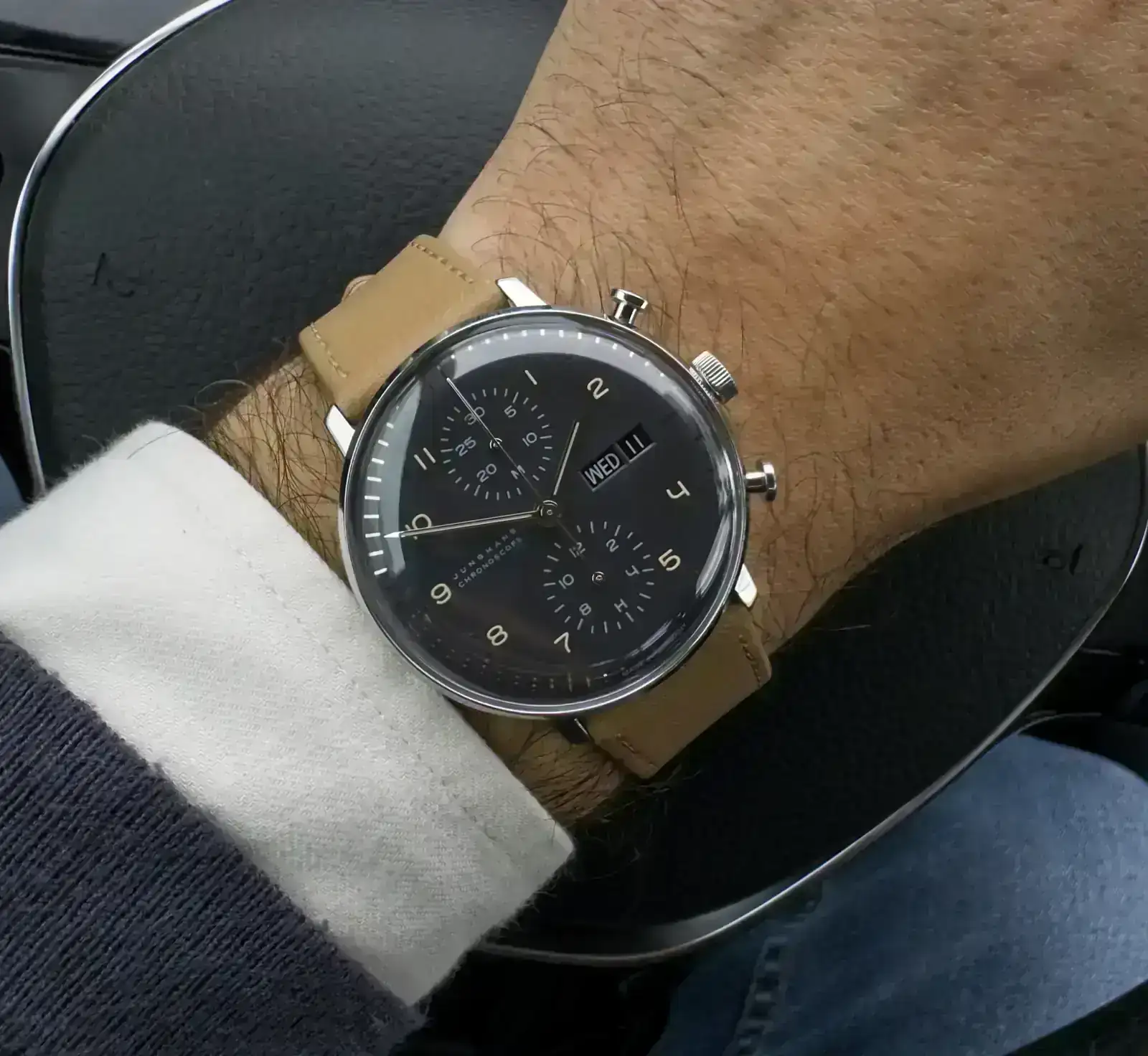 Y digo el crono porque solo tengo uno: Junghans Max Bill Chronoscope, esfera negra. Diseño minimalista, clásico y funcional. Dentro late un Valjoux 7750. Poco que añadir de este alemán más allá de que a mí me parece precioso.