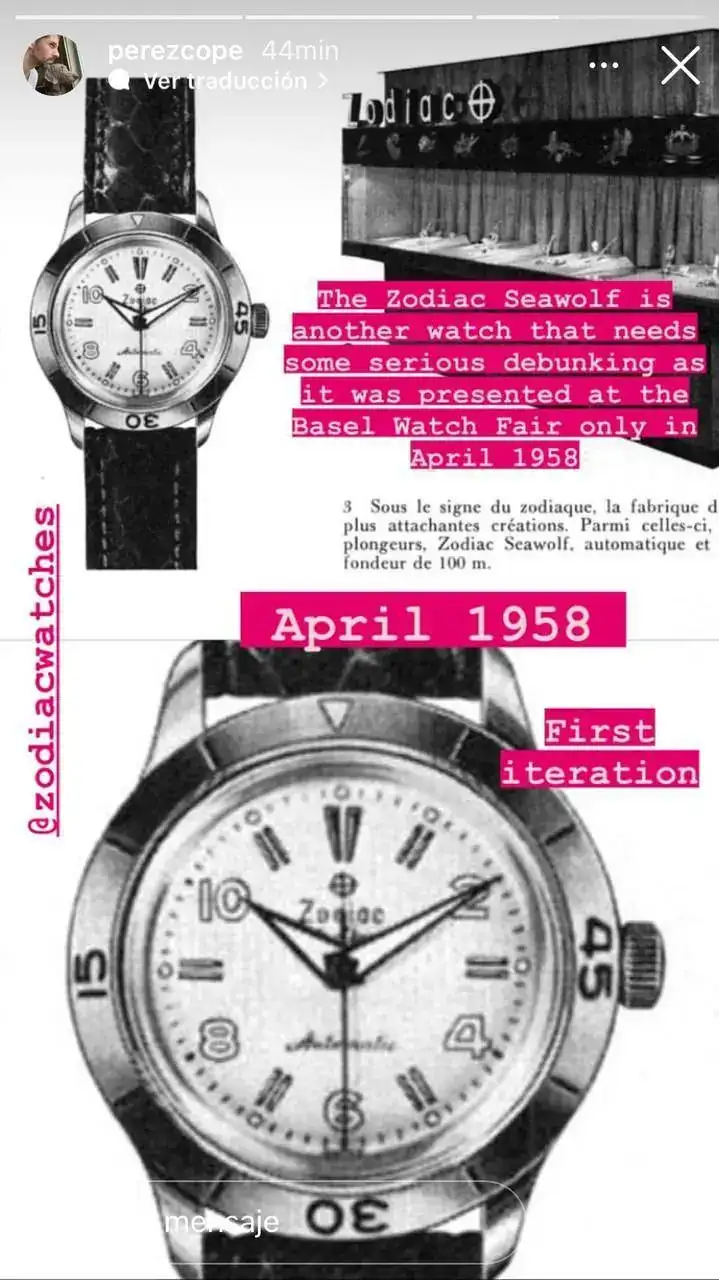 Séptimo : Tengo la impresión de que en 1953 ya existían en el mercado relojes de buceo con bisel exterior, pero eran relojes muy poco vistos al ser un uso muy marginal el de las actividades subacuáticas en esos años, incluidos entre otros esos primeros Zodiac Sea Wolf, de los que existen fotos de anuncios de prensa de 1953 donde se publicitan. Pero como no tengo pruebas serias, no quiero aseverar nada más.