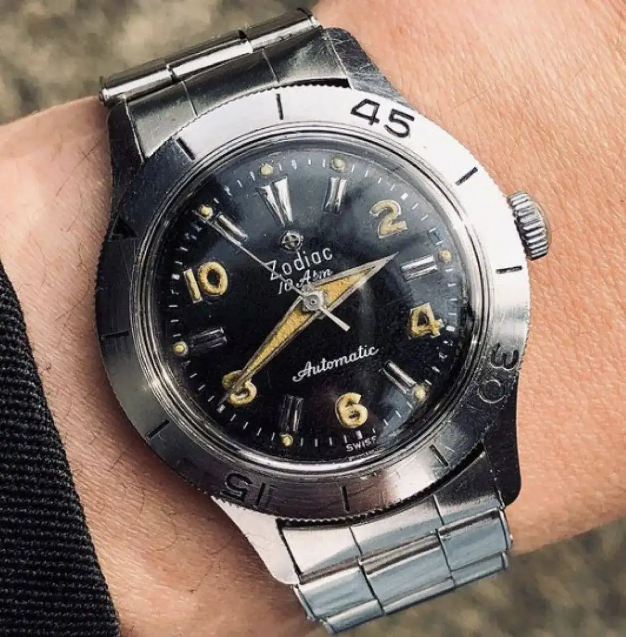 Pues este modelo referencia 699 se le parece muchisimo al de tu foto,de hecho solo cambia la pequeña leyenda de la esfera donde pone 10atm por la leyenda "Sea Wolf"Respecto al Zodiac Sea Wolf, existe mucha controversia, pero la gente no se molesta en investigar un poco y averiguar que Zodiac lanzó un primer modelo de reloj de buceo en caja de acero de 35 mm, con bisel exterior de cuenta atrás y calibre AS 1361 en el año 1953, con la referencia 691; pero este modelo no se llamaba "Sea Wolf".
