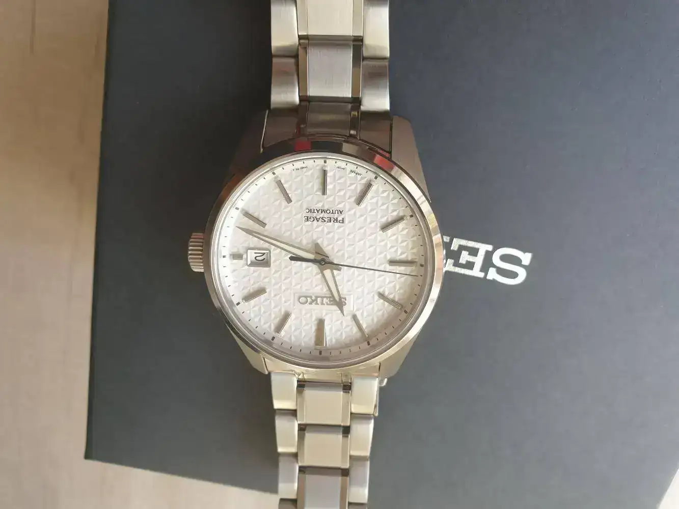 Seiko Presage SPB165, que me tiene embelesado, con su tamaño ideal, su buen ajuste a la muñeca, bellísimo dial y sus 70 horas de reserva (impresionante cuando te lo quitas el fin de semana y el lunes lo tienes a punto para ponértelo.
