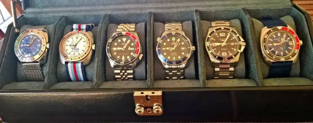 Por fin han llegado las vacaciones y éstos son los elegidos que me acompañarán este año. Se han quedado en casa algunos "pesos pesados" de la colección (Submariner, Planet Ocean, Speedmaster, Superocean...), decantándome esta vez por modelos todoterreno con los que despreocuparme de los arañazos de la arena. Para quitarme el mono, llevo el Seamaster 2500 coaxial olitas.