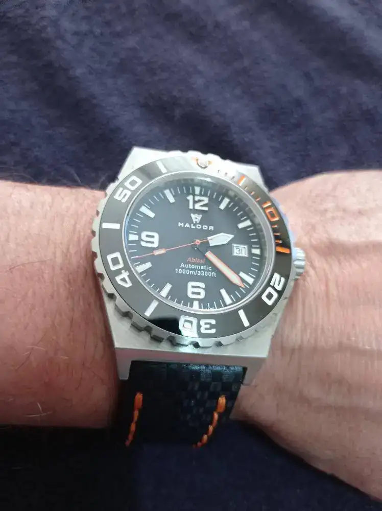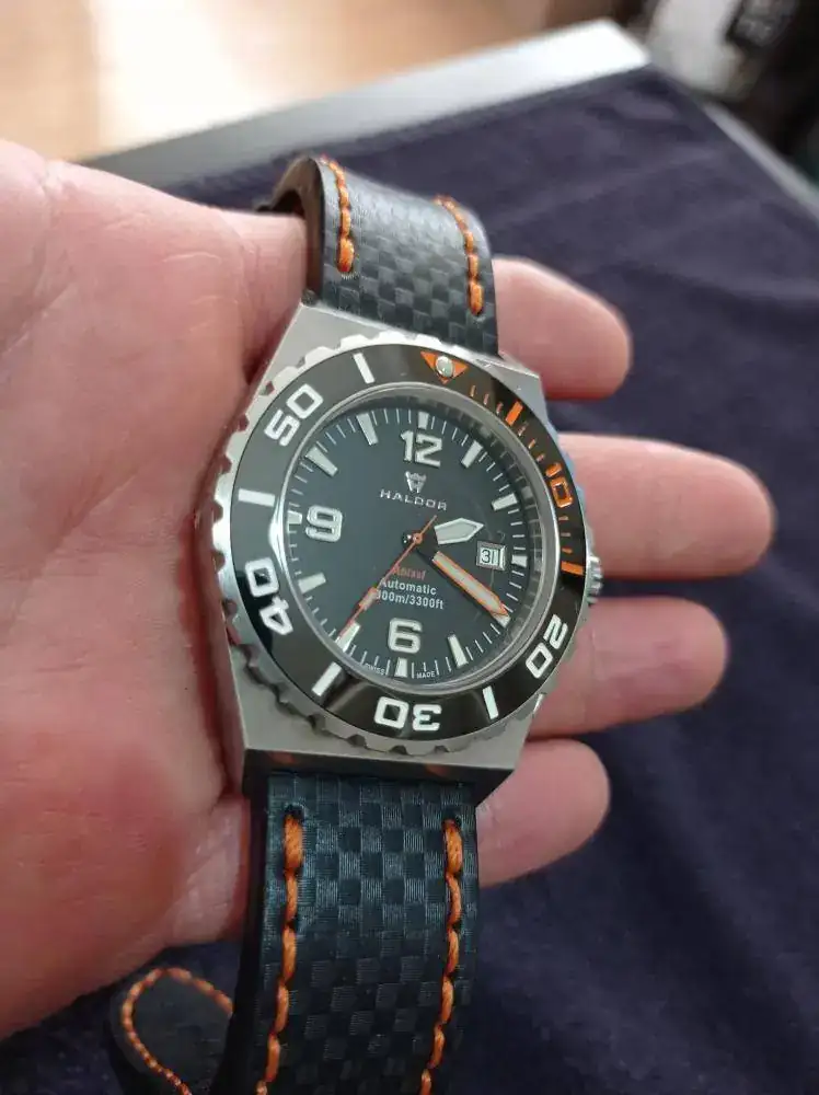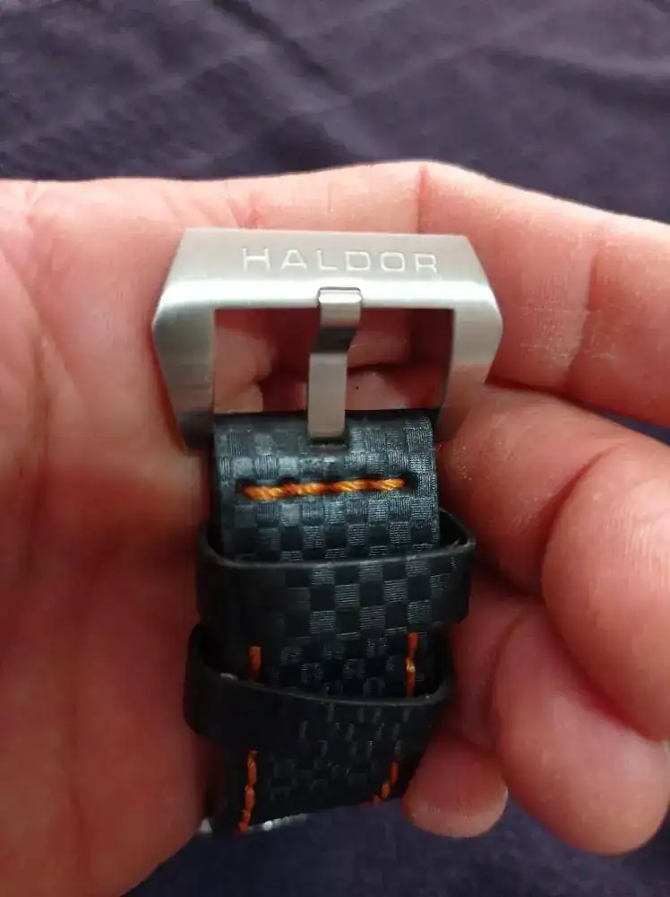 Brazalete: Correa dos piezas fibra de carbono/ Nato Bond / Armis acero macizo.