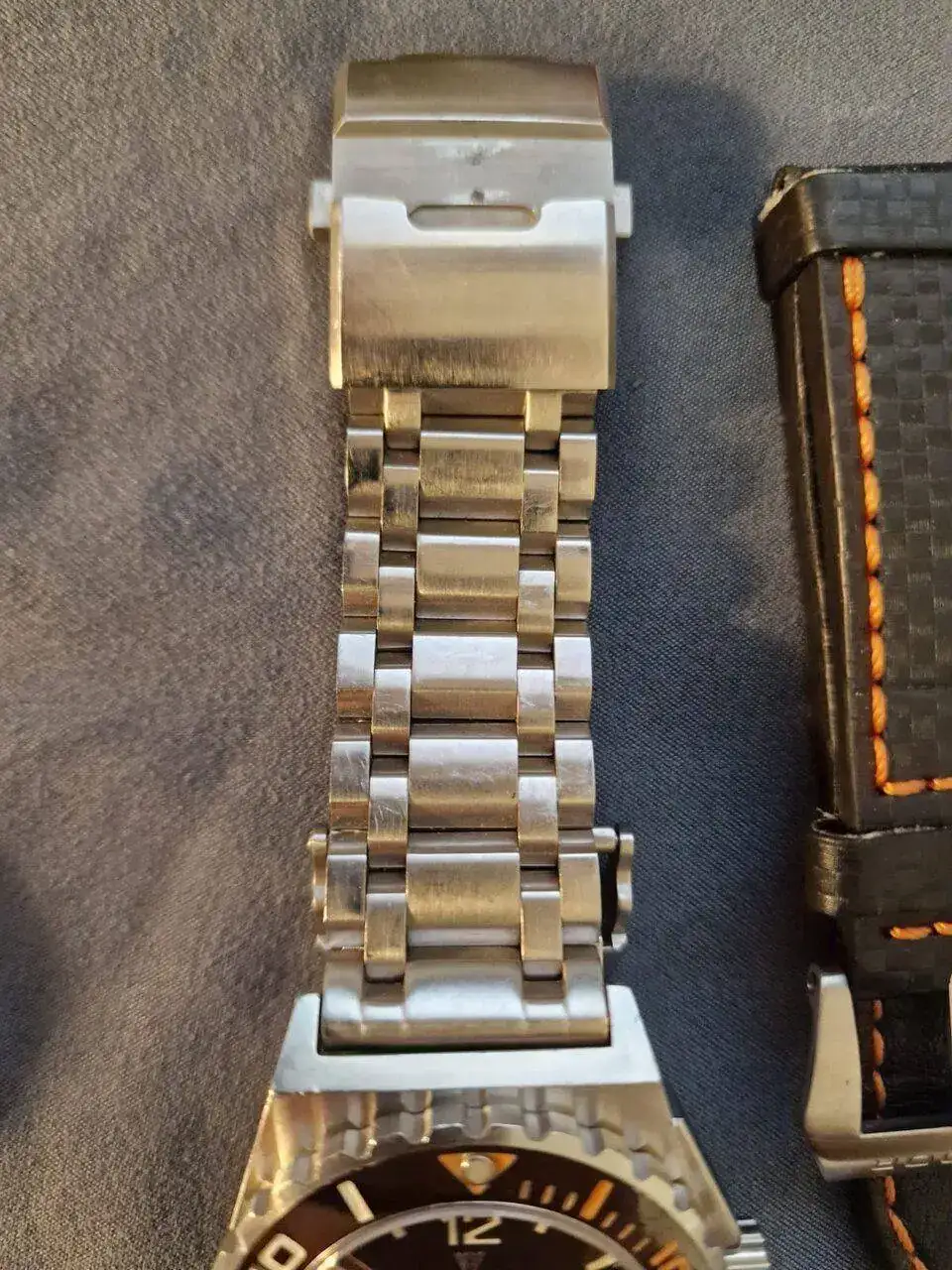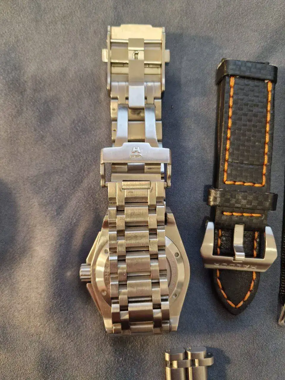 Brazalete: acero, correa de fibra carbono y nato