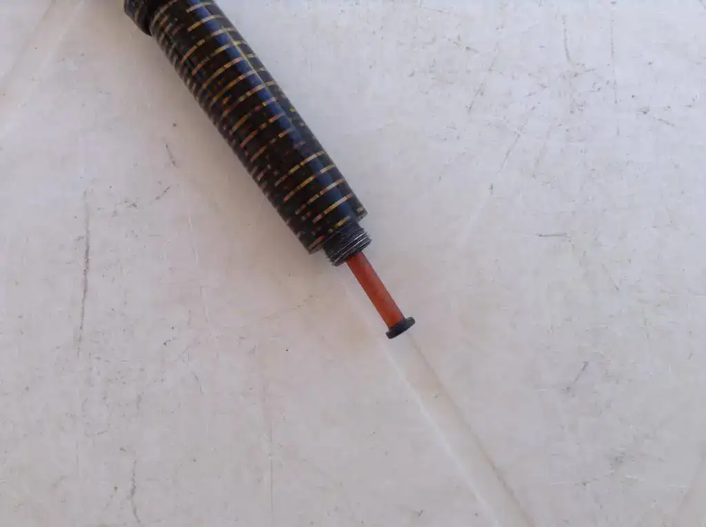 Creo recordar que derramaba poca tinta, porque me parece que mi padre le reparó el plumín y es posible que le dejara los gavilanes demasiado juntos, aunque el plumín no se ve mal.