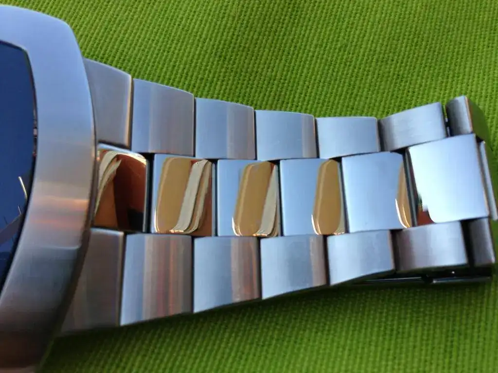 - El armis. Tiene eslabones pulidos y cepillados. Está en buen estado, pero en los trozos “a espejo” pueden verse algunas rayas. También en el cierre. No he podido fotografiarlo bien. En mi opinión, nada que yo no llevaría muy a gusto, la verdad.