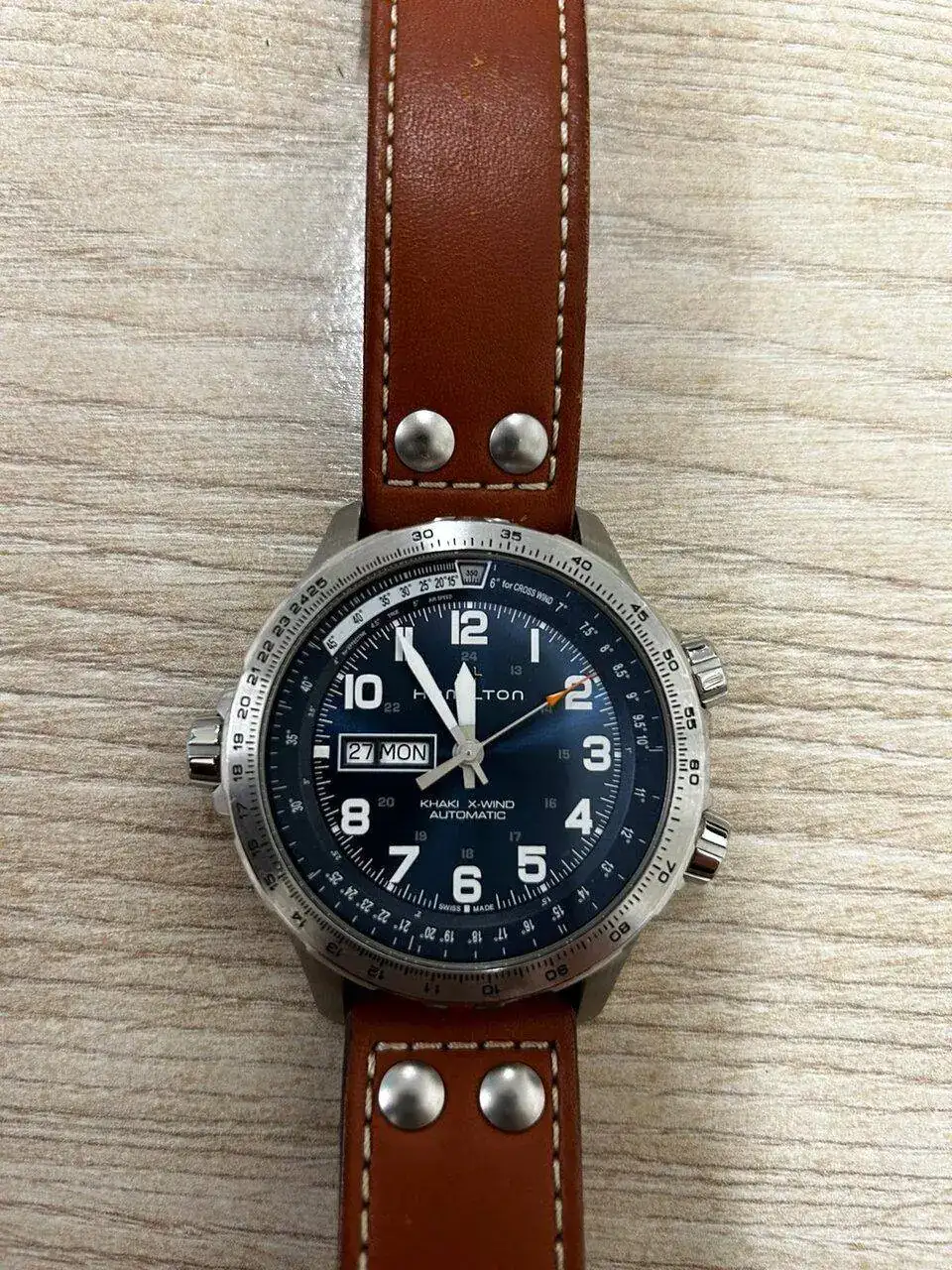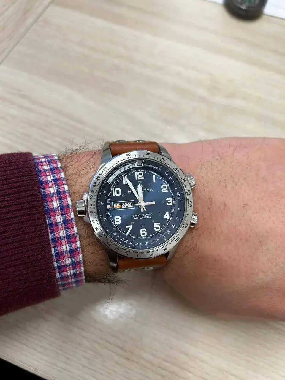 Buenos dias Compañeros, pongo a la venta muy a mi pesar este Hamilton Khaki X wind day date. Se pasa el dia en la caja y sale muy pocas veces al año, siendo un reloj que me encanta. Tiene un pequeño arañazo el bisel casi inapreciable a la altura del ocho. Si alguien necesita un video o alguna foto puede pedirla sin problema. El reloj viene con la correa original de hamilton y un armix tambien original de la marca valorado en 150 euros.