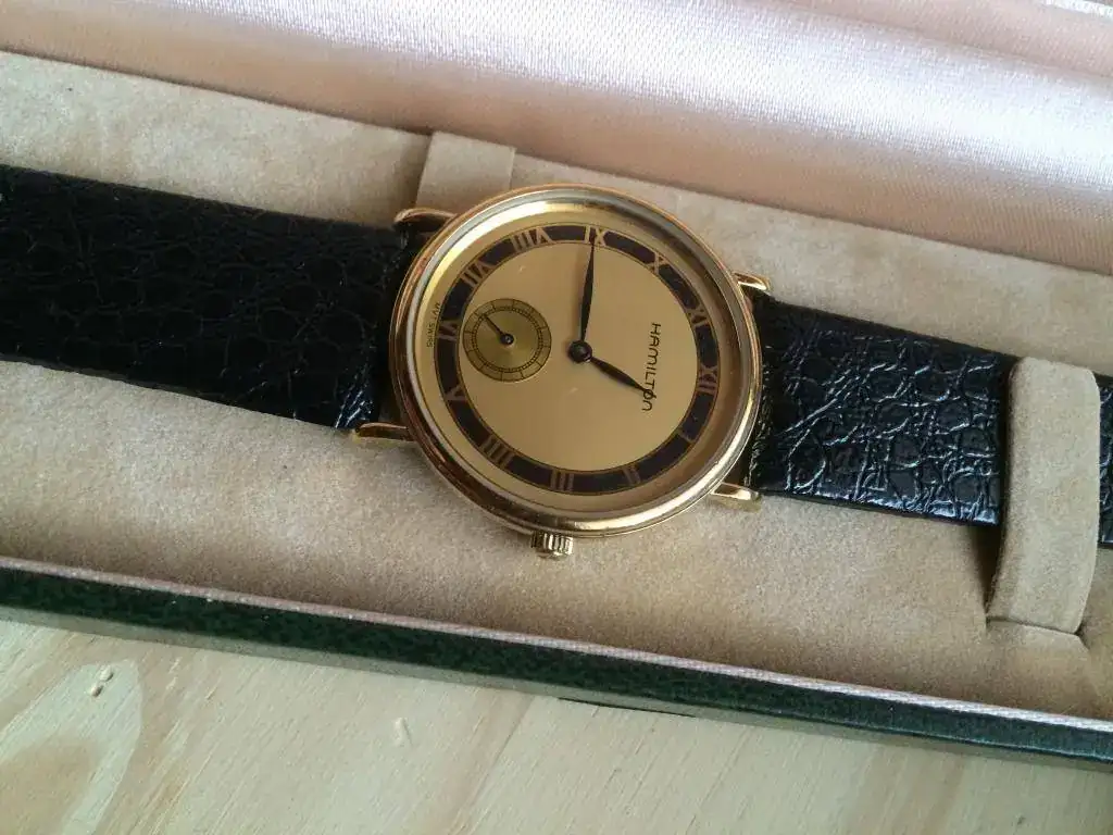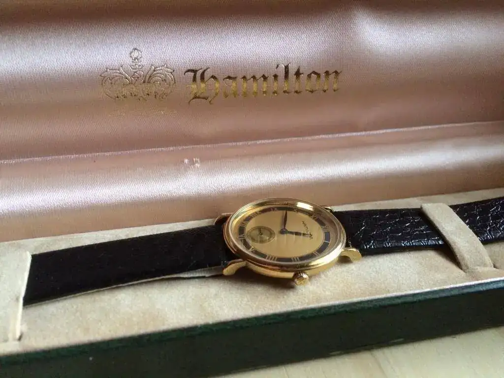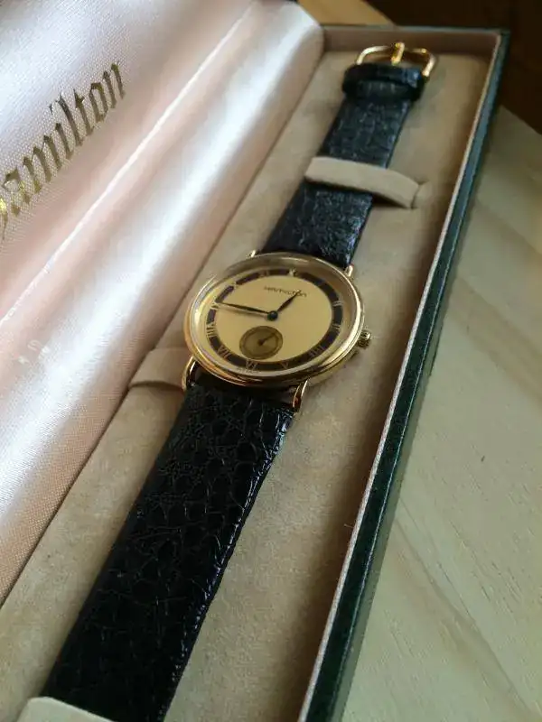SACO A LA VENTA ESTE BONITO Y ELEGANTE RELOJ UNISEX DE LA MARCA HAMILTON, CHAPADO EN ORO.