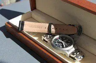 Saco a la venta este Hamilton Chrono que monta una Valjoux 7750. El reloj, que tiene algo más de 10 años, ha tenido un uso mínimo de un mes en todo este tiempo. El estado es realmente muy muy bueno y no aparenta en absoluto los años que tiene. El reloj está todo original, incluye el brazalete de acero con todos sus eslabones y la correa de piel que corresponde con el modelo absolutamente nueva.