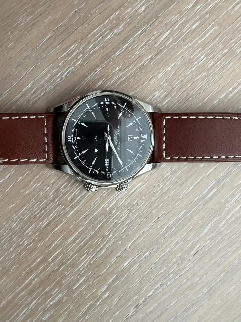 Hola buenas tardes, vendo este reloj Hamilton GMT Traveler ll, en buen estado tiene algunas pequeñas rayitas en el bisel, he hecho las fotos al sol para que se vean bien.