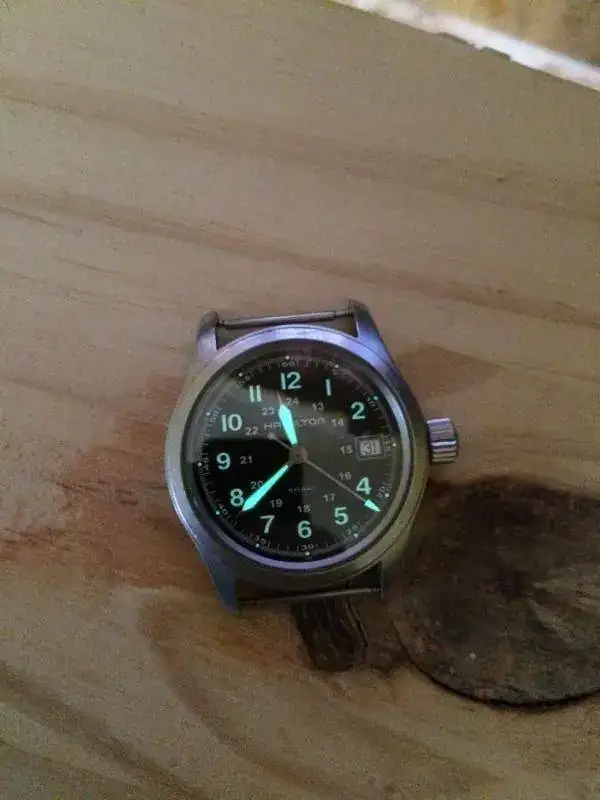 Se trata de un bonito Hamilton de estilo militar. Medidas contenidas de 33mm de caja s/c