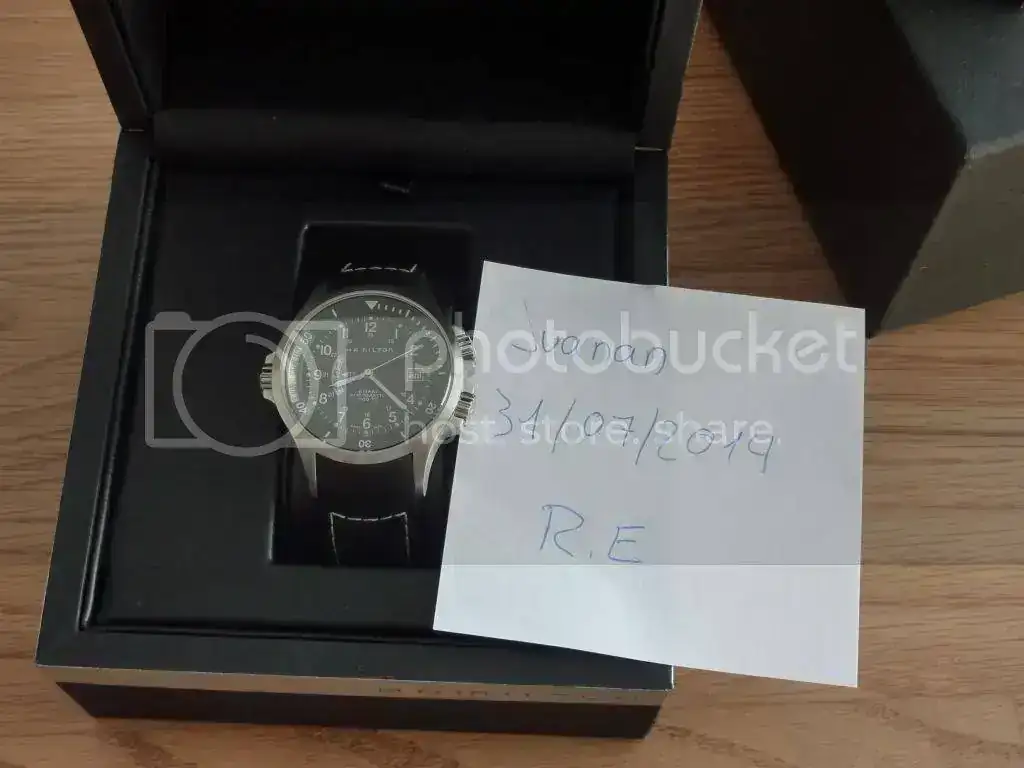 Sin estar muy seguro y debido a que voy a por algo más gordo, pongo a la venta mi Hamilton Khaki Navy GMT en su versión con correa de caucho.Es un reloj con caja de acero de 42mm sin contar coronas, cristal de zafiro con antireflejante, coronas roscadas, fondo visto que deja ver su bonito calibre ETA 2893-1, funciones de hora, minutos y segundos, calendario del dia del mes situado a las 3, función GMT, correa de caucho de excelente calidad y hebilla firmada Hamilton.