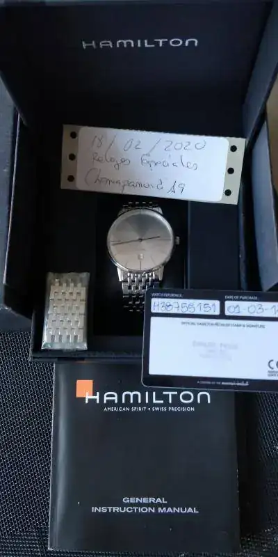 HOLA A TODOS, POR REDUCCION DEL NUMERO DE RELOJES QUE TENGO, SACO A LA VENTA MI PRECIOSO HAMILTON INTRA-MATIC. COMPRADO POR MI EN CONCESIONARIO OFICIAL HAMILTON, EL ESTADO DEL RELOJ ES DE 9,9 SOBRE 10 (VER FOTOGRAFIAS ADJUNTAS) YA QUE HA TENIDO MUY POCO USO. EL ARMIS ORIGINAL ESTA PERFECTO ASI COMO CAJA Y CRISTAL, YA QUE POR MUCHO QUE LE MIRO NO LE VEO NADA.