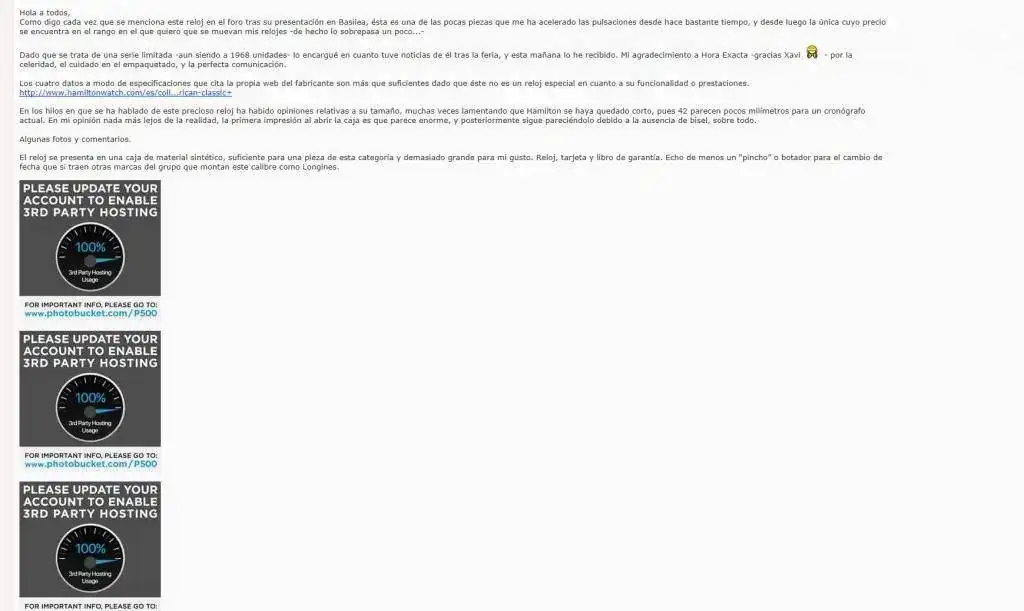 Vaya. Parece que está excedido el tráfico del Photobucket , y eso que ni por asomo tengo tantas fotos como el jubilao. Voy a ver si puedo pasarme las fotos al móvil y subirlas desde el tapatalk. Lo siento.