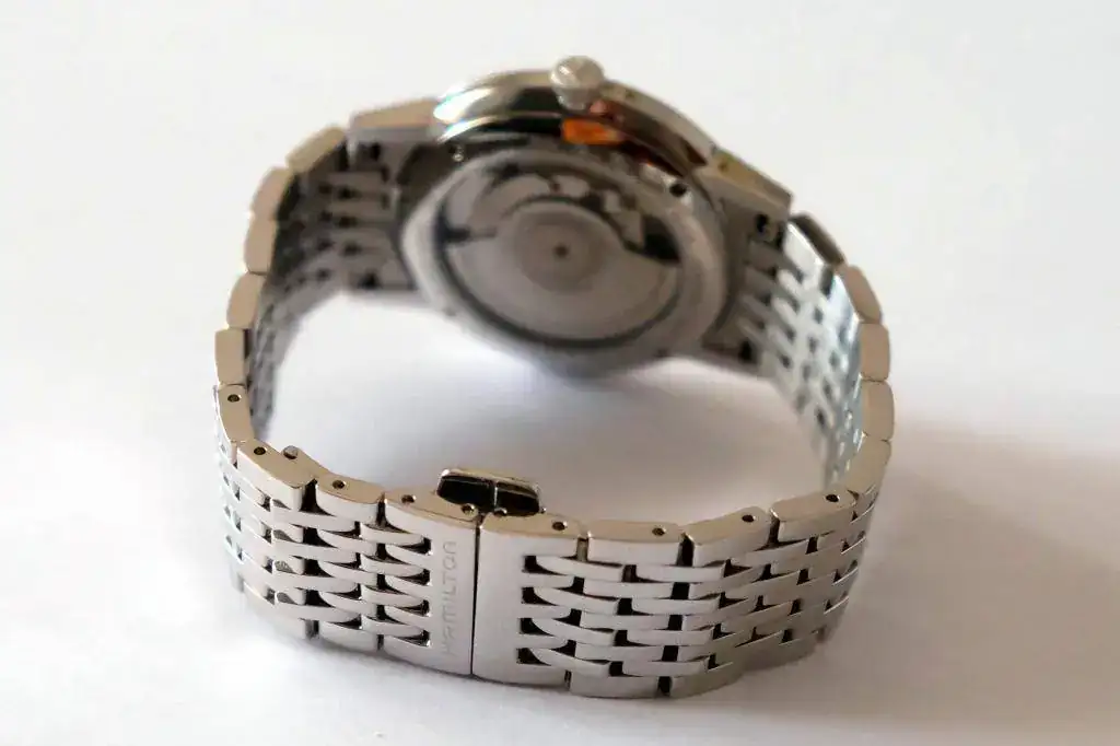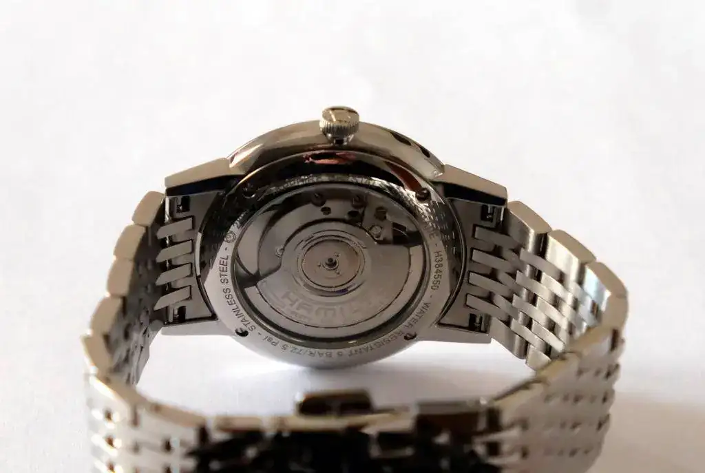 Su diseño, sin apenas bisel, hace que parezca más grande de lo que realmente es, basta compararlo con su hermano Khaki Filed (de también 38mm) para comprobar que el efecto óptico es muy distinto.