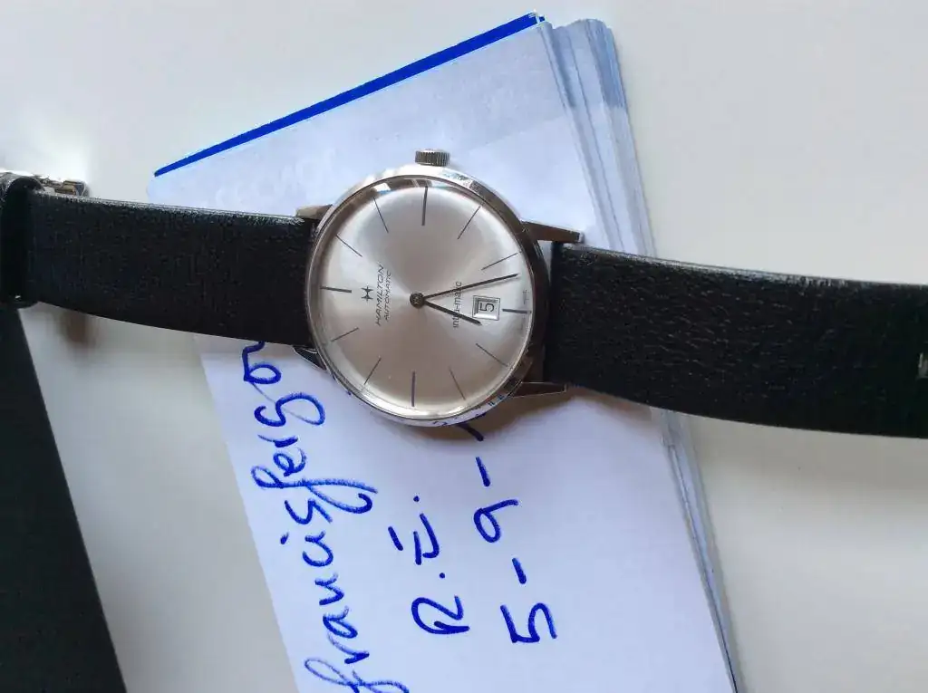 Para hacer hueco a un recién llegado, pongo en venta este fantástico Intramatic. es el modelo de 38 mm, esfera plata y correa de piel negra original.