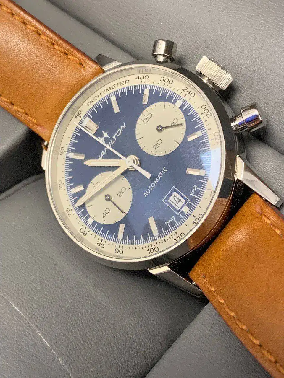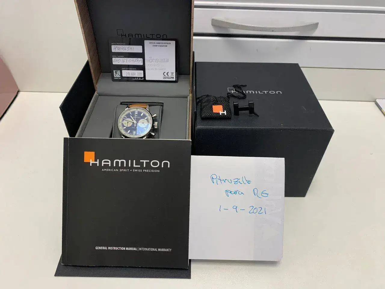 Bueno pues pongo a disposición del respetable este precioso Hamilton crono intramatic en un gran estado, adquirido en Abril de 2021 en Unión Suiza de Madrid, por lo que le queda mucha garantia. Con un pedazo de calibre, este reloj da muchisimo por poco. Creo que poco más hay que decir de esta pieza. Incluyo en el precio el envío por MRW sin asegurar.