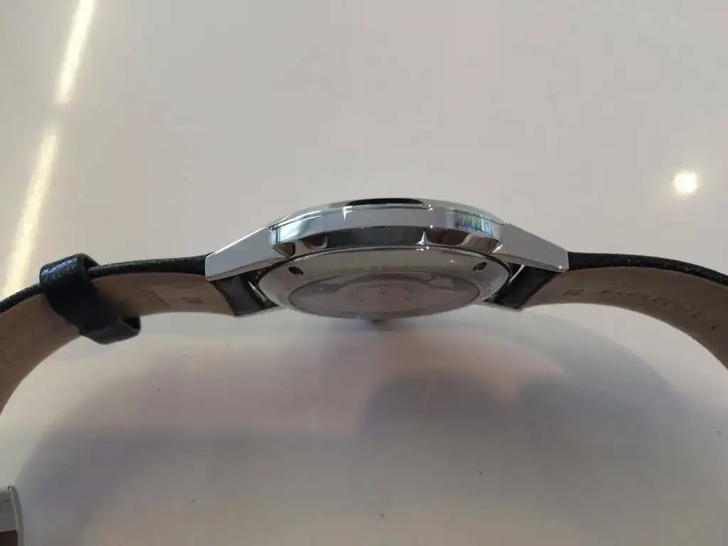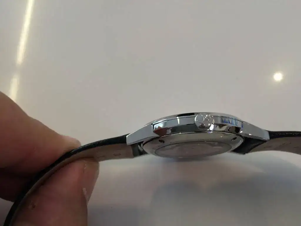 Era mi reloj de vestir, y como no trabajo de traje, pues no tiene más de 5 o 6 puestas (un par de bodas, alguna de fin de semana, y alguna cena que me daba por ponermelo de pena al verlo en la caja sin usar): debido a este uso más que moderado, el reloj está casi nuevo. He intentado buscarle pelillos, y no me ha sido fácil: alguno testimonial y poco más. El reloj está en muy buen estado (no diré de reestreno, pero de 9 sobre 10 siendo riguroso). A las fotos me remito.