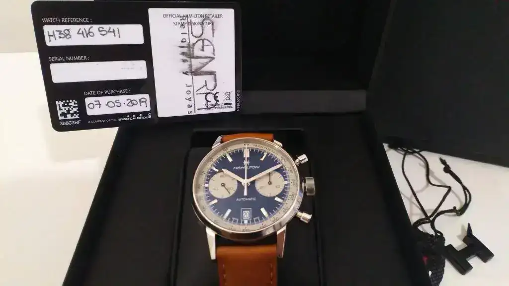 Se incluye la dotación completa, caja, documentación, tarjeta de garantía sellada, accesorio punzón de Hamilton para el paso de fecha, todo completamente nuevo.