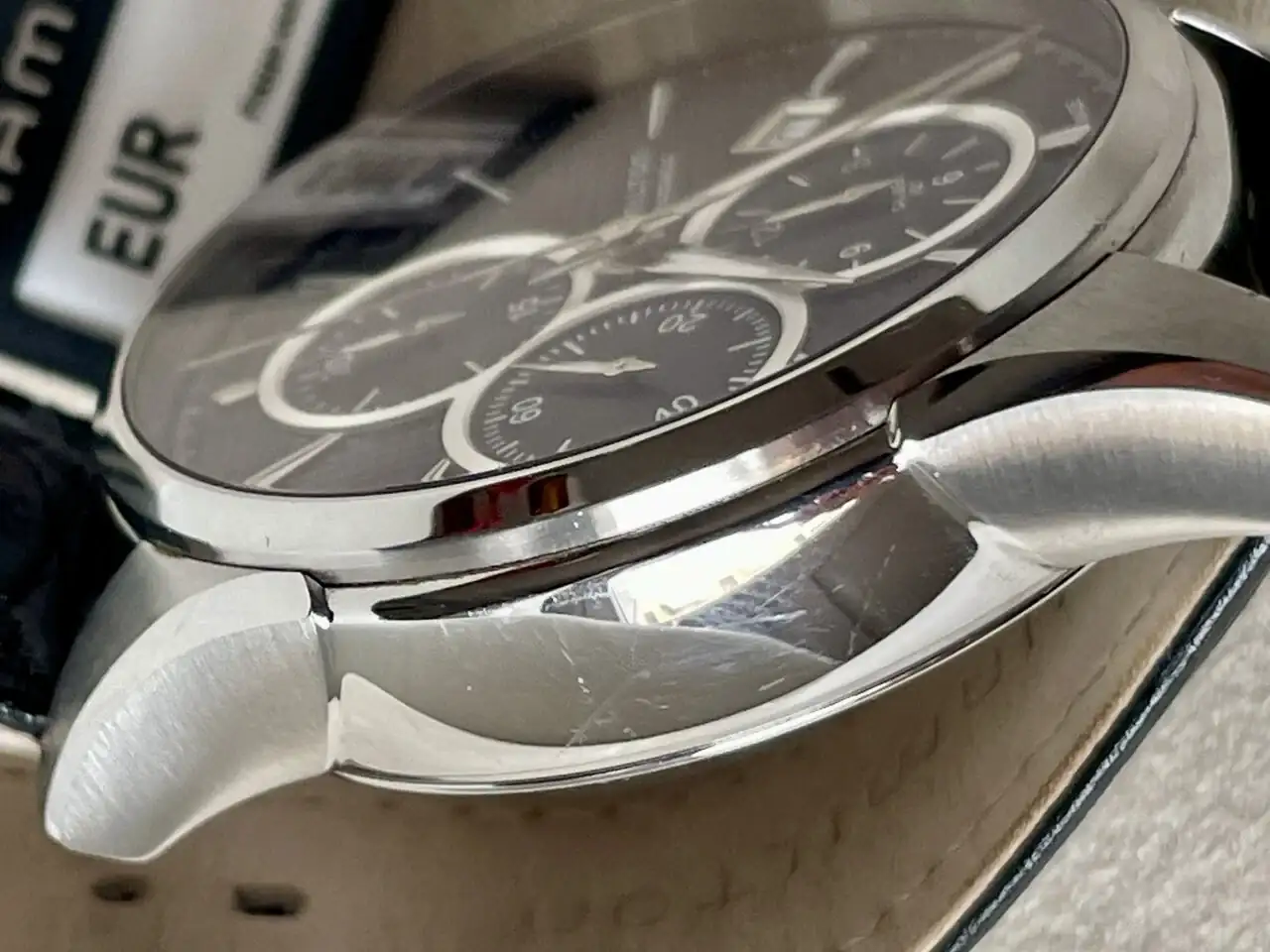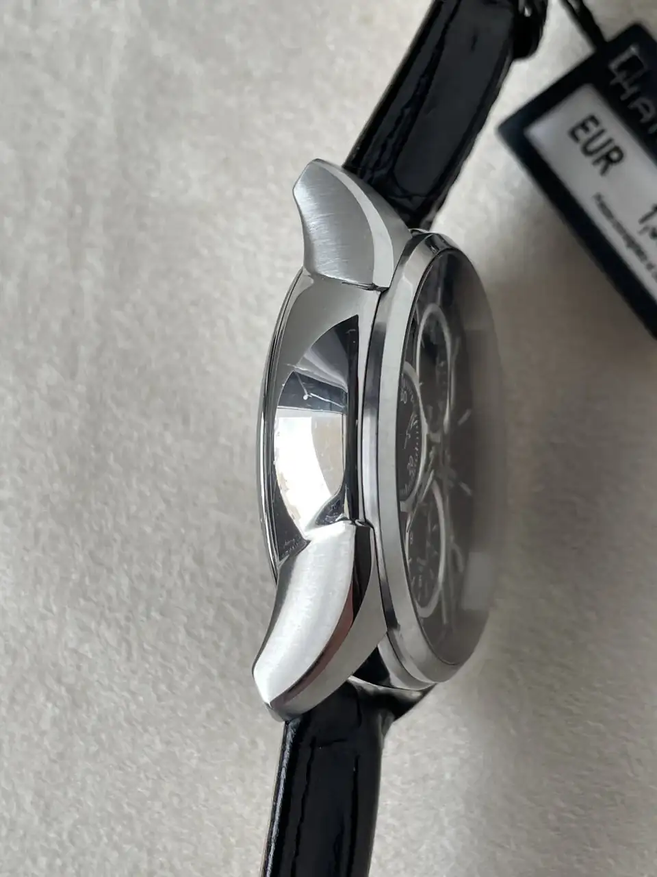 El H-21 es un movimiento de cronógrafo automático que puede incluir función fecha o día-fecha. Con una reserva de marcha de 60 horas, este potente calibre mantiene y mide el tiempo con gran fiabilidad mediante dos o tres subesferas situadas a las 6, 9 y/o 12 en punto, y pulsadores de inicio/parada y reinicio en el lateral.Caja (medidas): 42mm