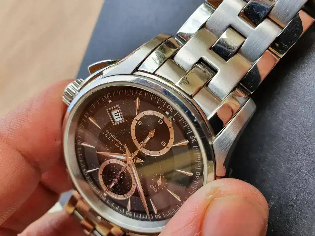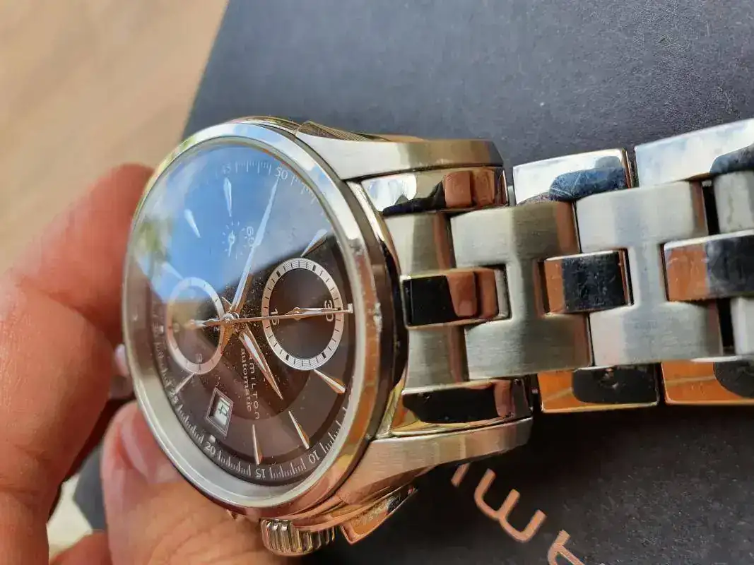 No es un reloj nuevo y tiene un par de marcas en el bisel que salen en las fotos a la altura del 0 y del 33, aproximadamente.