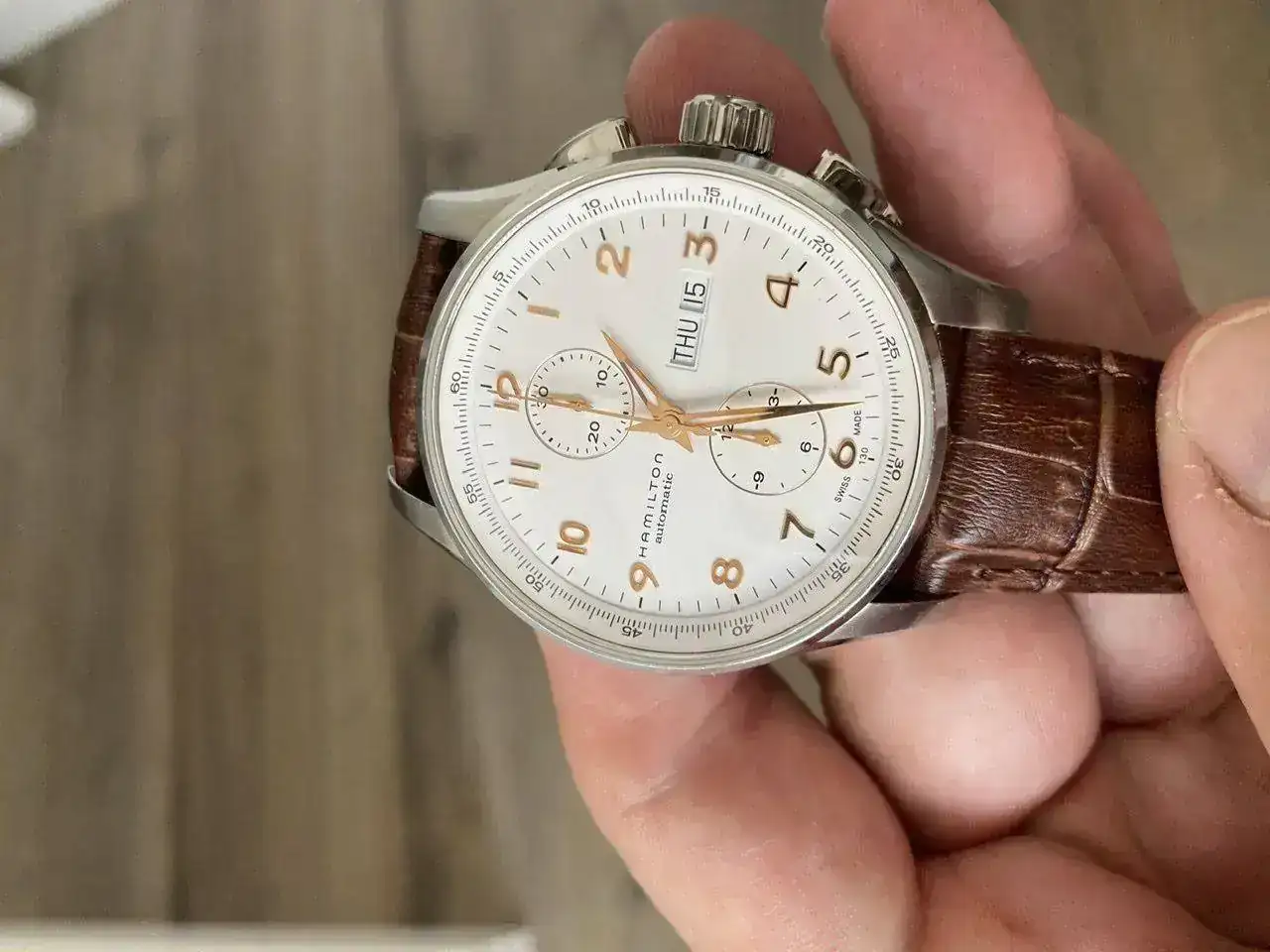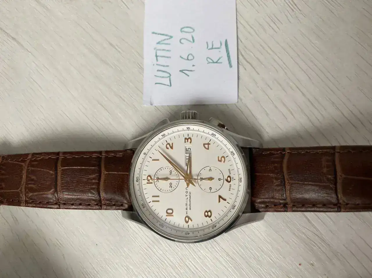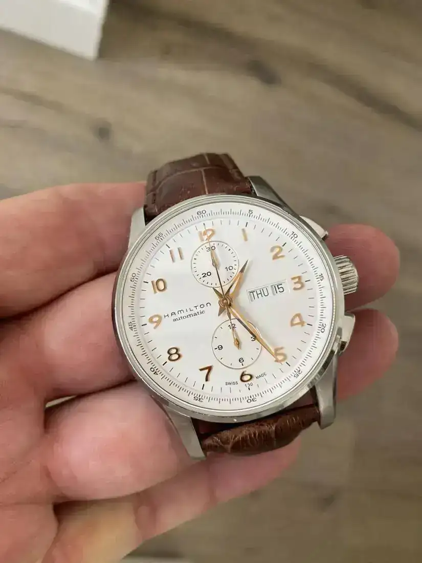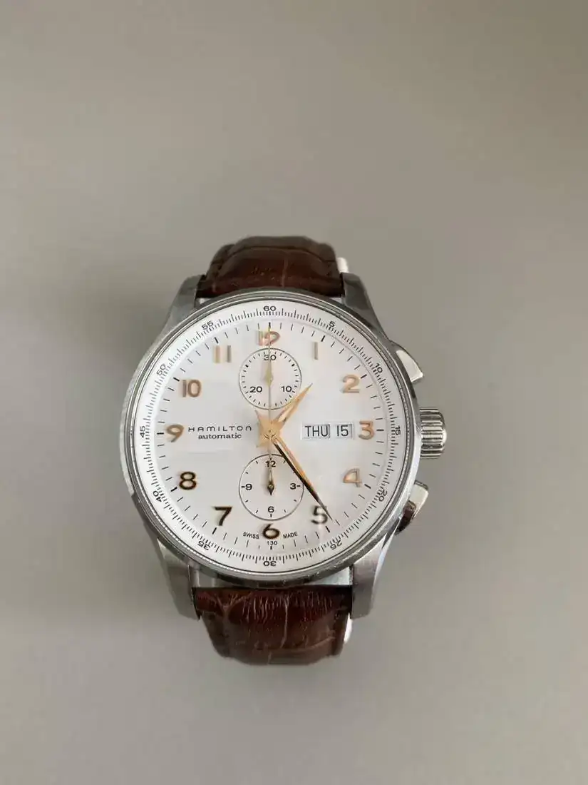 Buenas tardes,Saco a venta este relojazo Hamilton Jazzmaster Maestro crono automàtico con el calibre H21 que ofrece 60 horas de reserva de marcha.