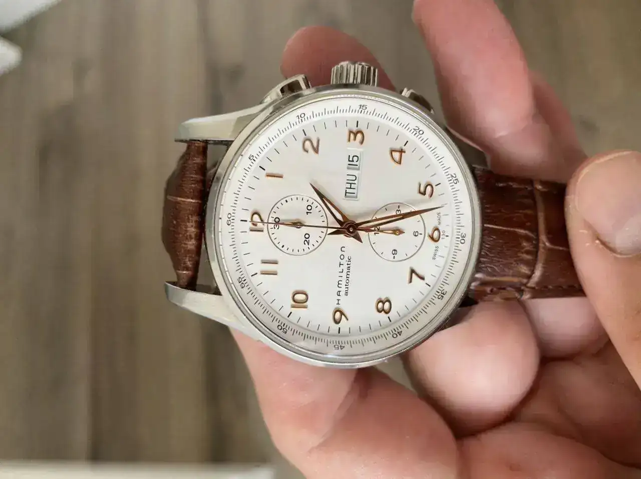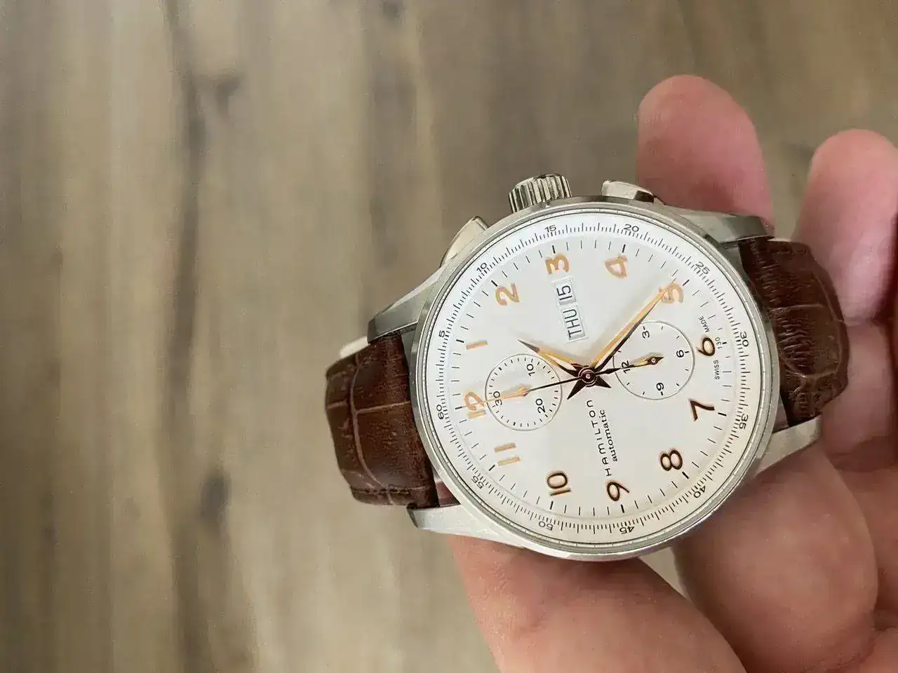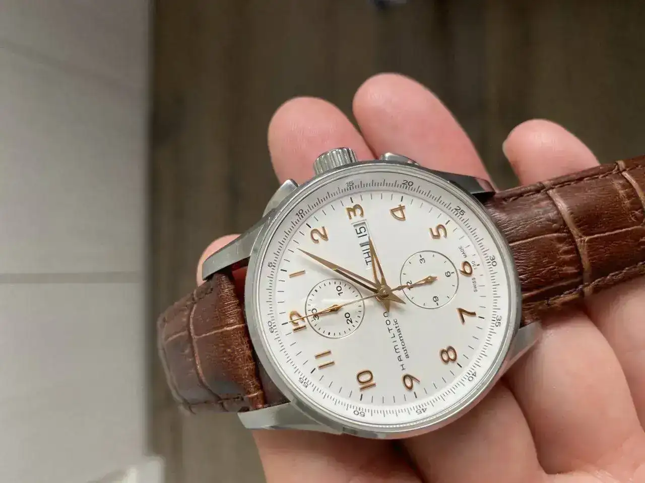 Buenas tardes,Saco a venta este relojazo Hamilton Jazzmaster Maestro crono automàtico con el calibre H21 que ofrece 60 horas de reserva de marcha.
