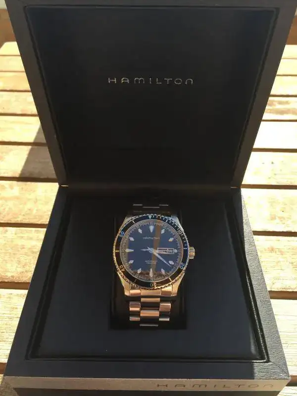 Buenos dias amigos, saco para venta esta maravilla de Hamilton Jazzmaster Seaview Day Date Auto, el estado del reloj es perfecto, lo he usado muy poco, por no decir en contadas ocasiones, fue comprado por mi en ECI, la garantia caducó el 25/10/2013.