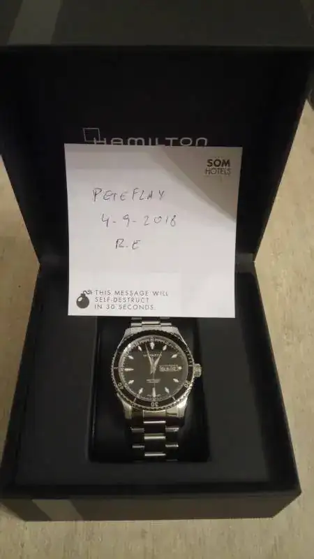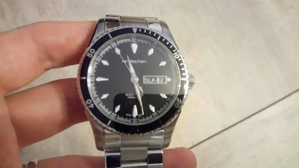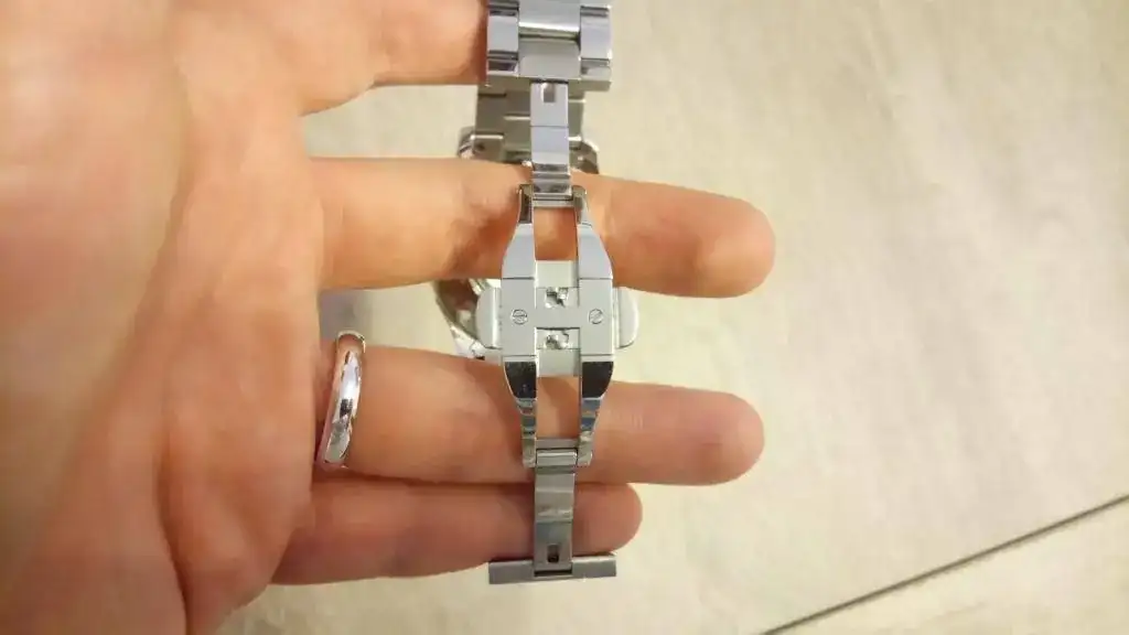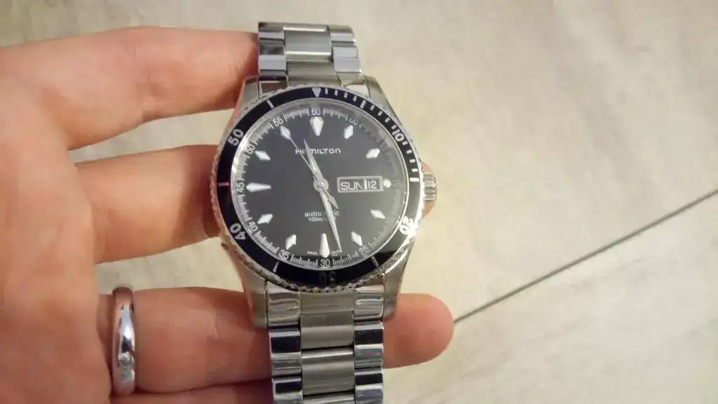 Como digo, está en estado de reestreno, impoluto. Decir que tiene un tamaño de 42mm (corona incluida) y una altura de 12mm, queda perfecto en la muñeca. Lleva cristal de zafiro abombado, bisel unidireccional de aluminio, y monta el calibre H30 (que es el Powermatic, con todas las piezas metálicas, fecha y día). De marcha va bastante bien, unos +5s/día. El brazalete es precioso y muy cómodo, con cierre de mariposa, y los eslabones laterales pulidos, mientras que el central es cepillado. Los índices son de forma romboide, muy originales. En conjunto, es un reloj muy bonito, original y poco visto.
