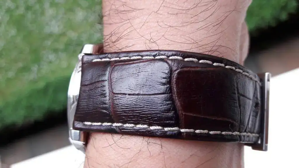 Con el reloj también se entrega una milanesa a estrenar de buena calidad (soló se ha puesto para hacer las fotos) y una correa de piel marrón oscura nueva de marca Steinhart de mucha calidad y por supuesto se entrega con su correa original.