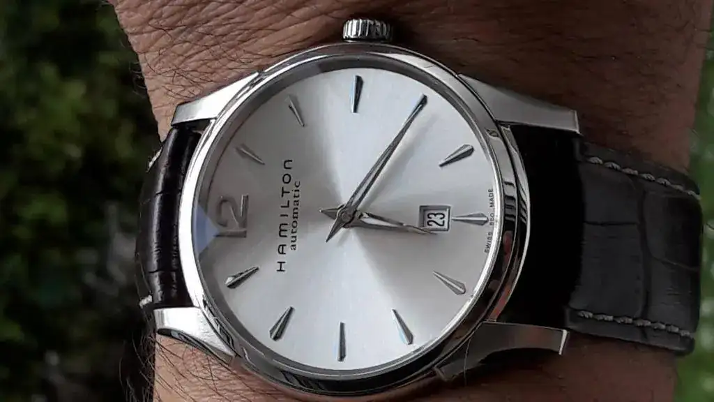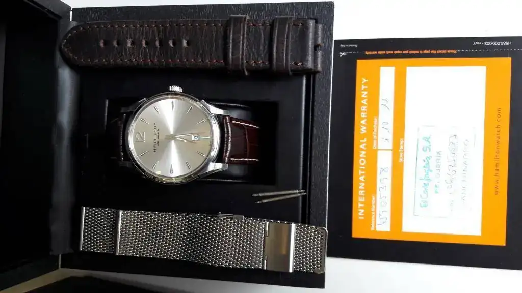 Vendo un magnífico Hamilton Jazzmaster Slim de 43mm esfera plateada, automático con posibilidad de carga manual. 48 horas de reserva de marcha y calibre ETA 2892A2 con 21 rubíes. De los mejores calibres que ha hecho ETA. Estanqueidad de 3ATM (30 metros).