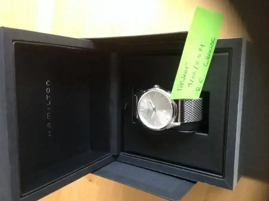 Ofrezco un Hamilton con 43 mm de diámetro sin contar corona y 7 mm de grosor.