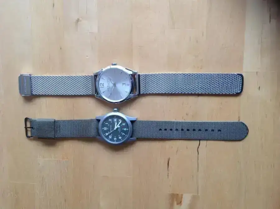 Os pongo una imagen con su hermano el Khaki field de 38 mms, para apreciar mejor su tamaño.