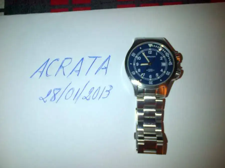 Vendo este modelo descatalogado, muy dificil de encontrar, con una esfera azul preciosa, luminosidad nocturna muy buena, automatico, sumergible 200 m, aunque no se ha revisado estanqueidad, pero yo lo he mojado sin problema (nadar en piscina), eso si aviso que tiene señales de uso o sea que el que lo compre para tenerlo perfecto, le vendria bien un pulido. Es super comodo de llevar. No tiene documentación aunque si factura de compra de CASH CONVERTERS. Tiene todos los eslabones, por tanto es adaptable a cualquier muñeca. POR FAVOR SOLO VENTA NO RELOJES A CUENTA NI CAMBIOS. PRECIO VENTA : 290 € + ENVIO
