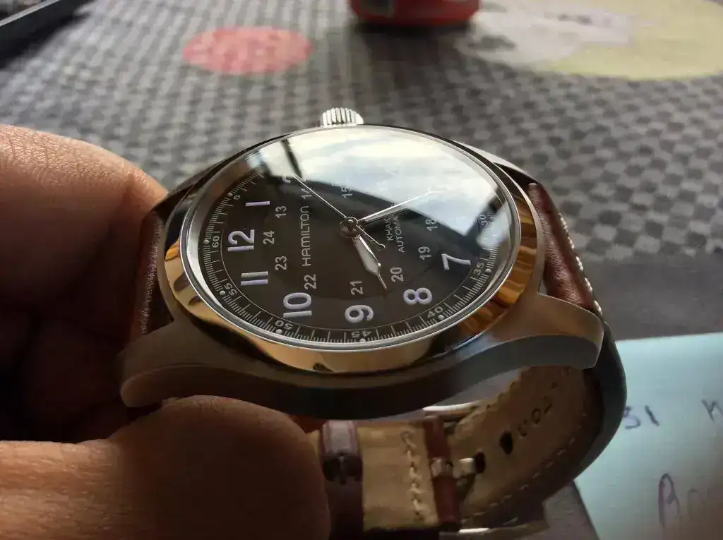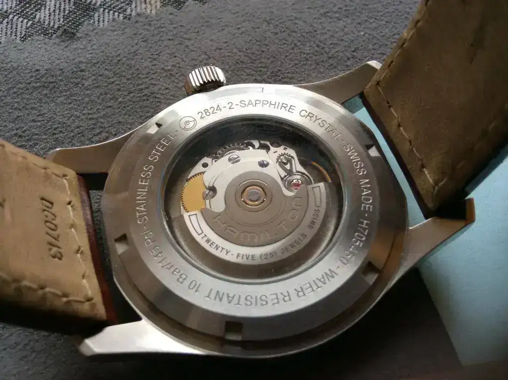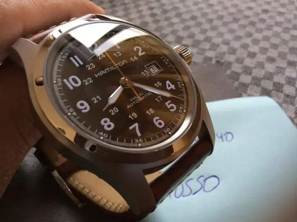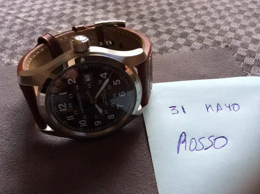 Cambio Hamilton automático de 42 mm y maquinaria ETAsa 2824-2 comprado en C.O. Hamilton en marzo de este mismo año, por lo que le queda casi toda la garantía por delante. El estado es tal como se ve en las fotos, muy bueno, lo único a reseñar es un arañazo a las 1 que no he llevado a pulir porque en general es que lo único que se le puede achacar (para los más tiquismiquis).
