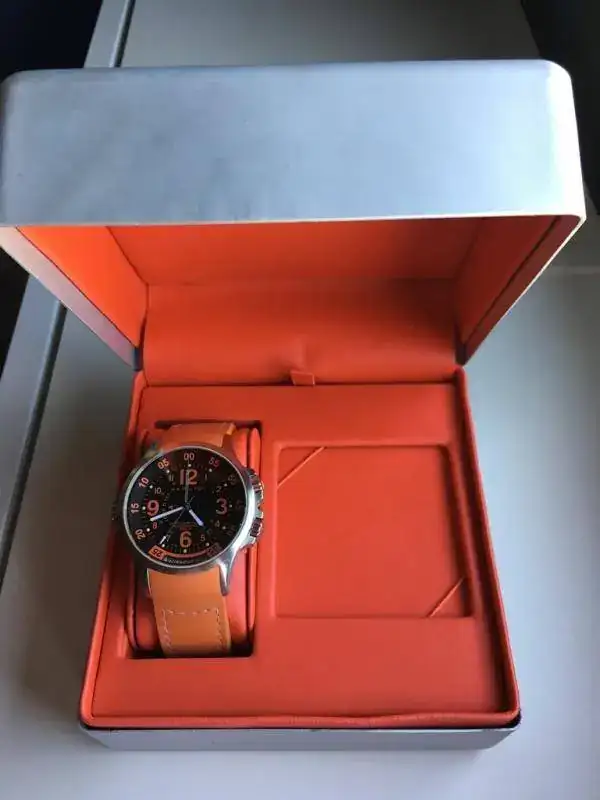 Como comento, lo compré de segunda mano, y no me dieron papeles. Tiene un único defecto y es que la correa no trae la trabilla para sujetar el sobrante de la correa. Creo que el precio responde tanto a la falta de papeles como a este defecto en particular. Por lo demás, el reloj presenta ligeras marcas de uso que pueden apreciarse en las fotos.